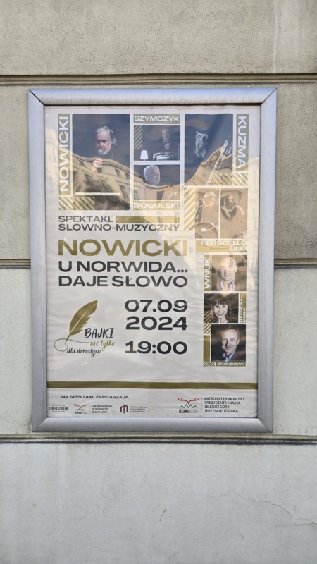 Wydarzenie oparte było na prezentacji utworów poetyckich dolnośląskiego artysty Grzegorza Nowickiego. Podczas spektaklu prezentowane były wiersze i wierszowane bajki-opowieści zawierające w swojej treści przesłania dotykające tematyki historycznej oraz społecznej regionu w żartobliwy sposób komentujące wydarzenia dotyczące naszej codzienności. Poezja Nowickiego trzyma wysoki poziom artystyczny, porusza ważkie tematy współczesności, zwraca szczególną uwagę na wartości, które powinny towarzyszyć naszemu życiu, szczególny nacisk kładąc na sztukę samodzielnego myślenia i konstruowania wniosków wynikających z obserwacji faktów. Porusza i wzrusza. Wiersze Nowickiego z dużym powodzeniem prezentowane były w instytucjach kultury od Jeleniej Góry po Wiedeń, gościły w Teatrach, publikowane w gazetach, almanachach oraz upowszechniane w mediach społecznościowych i Internecie.