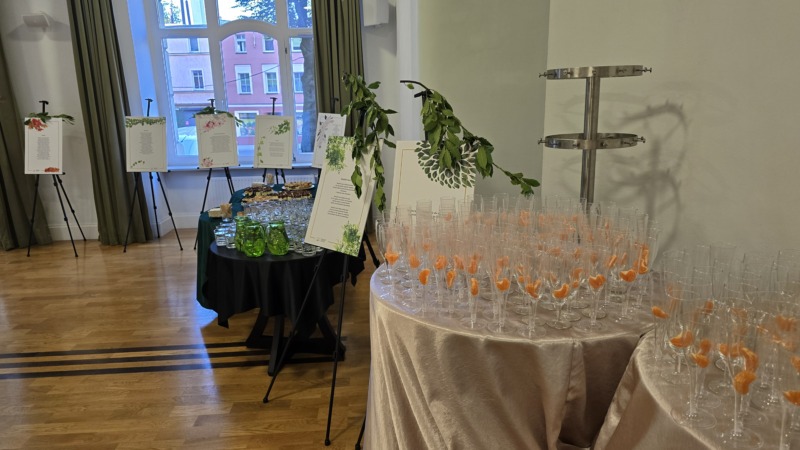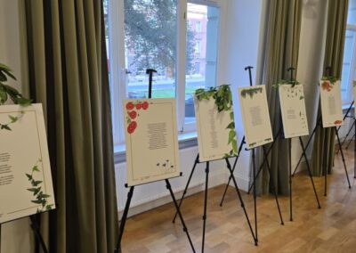 Prezentacja wystawy „Wiersze do zaczytania” połączona z poczęstunkiem dla gości wydarzenia, będąca jednocześnie czasem do indywidualnych spotkań i rozmów z twórcami.