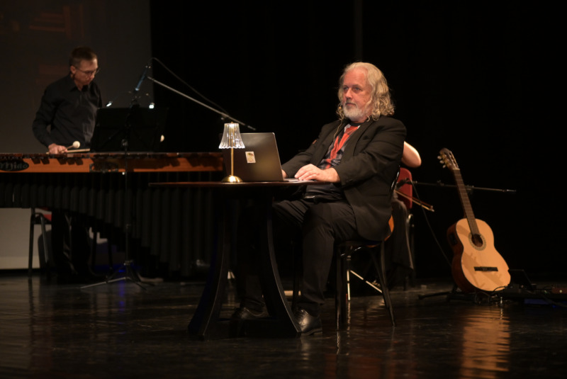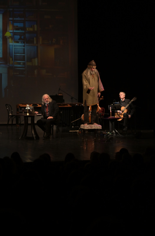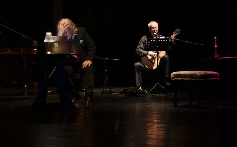 Część słowno-muzyczna (poezja w formie mówionej i śpiewanej z towarzyszeniem gitary i harmonijki ustnej) z elementami performance i pantomimy.